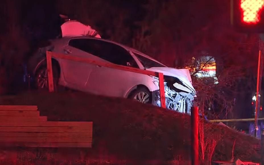 Police say the northbound car crossed East Washington Street at high speed, went airborne and …